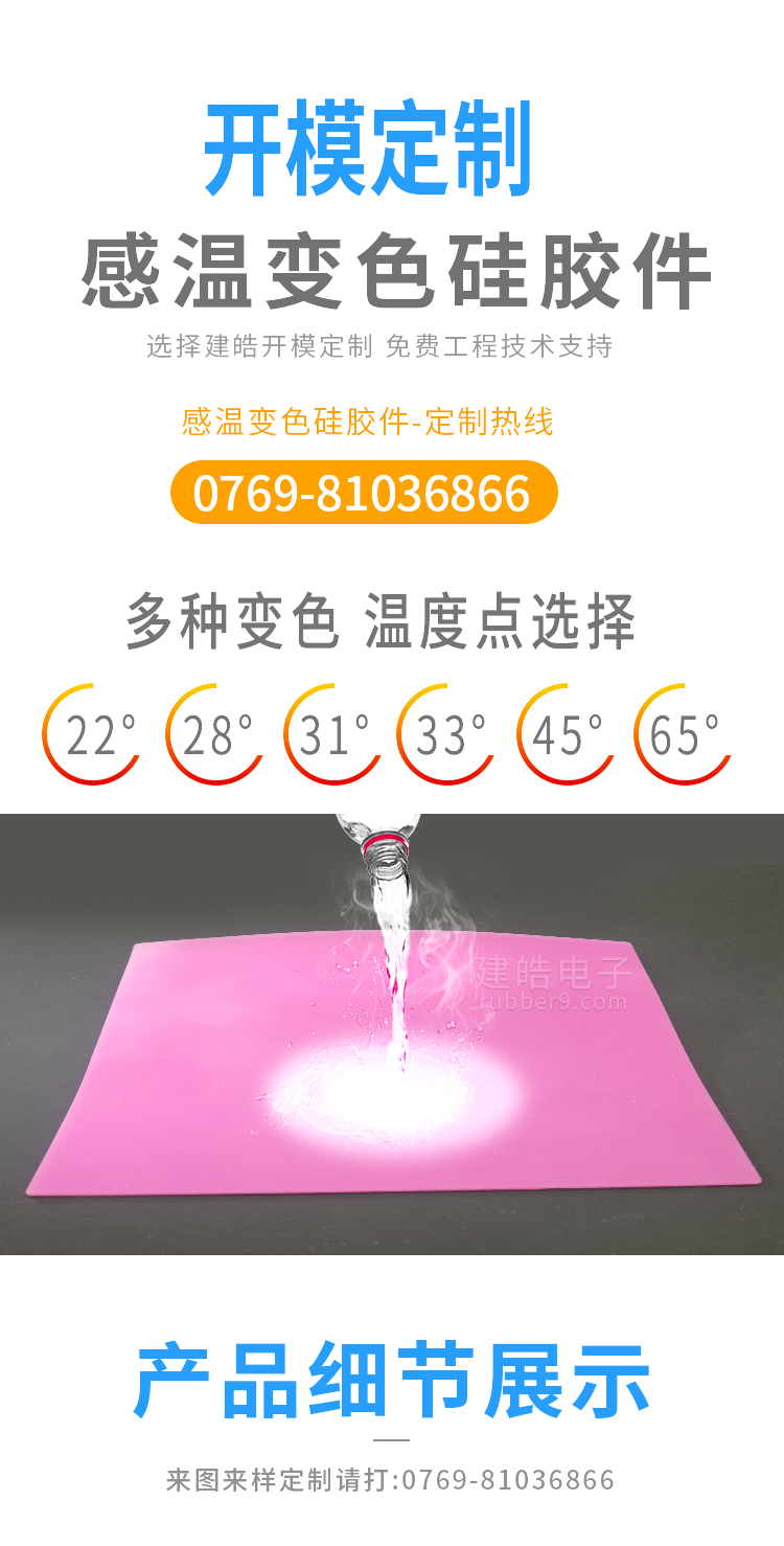 | 產品名稱 | 提供美容儀器專用感溫變色硅膠件來圖來樣定制 |