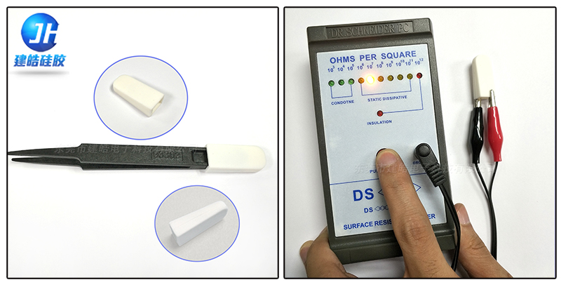 其實,那些防靜電異型硅膠件都是模壓成型而成,要知道模壓成型不僅可以做各種形狀的硅膠件,還可以做各種顏色。所以做白色肯定是小意思啦!建皓就曾為客戶開模定制過一款防靜電硅膠護(hù)套。如下圖,該款硅膠套是一款防靜電硅膠鑷子套。電阻值能達(dá)到106至108之間。